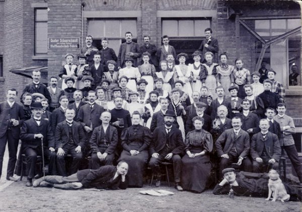 1845 | Am 17.08. wurde der Limbacher Gustav Schaarschmidt geboren. Er war als junger Mann bei seinem Vater beschäftigt und drehte den Kettenstuhl. |  Bild 1: Gustav Schaarschmidt, etwa 1875 Bild 1: Gustav Schaarschmidt, etwa 1875  Bild 2: Ehepaar Scherf um 1900 Bild 2: Ehepaar Scherf um 1900  Bild 3: Belegschaft 1907 Bild 3: Belegschaft 1907  Bild 4: Firmengebäude in Limbach, Gabelsberger Straße 10, 1926 Bild 4: Firmengebäude in Limbach, Gabelsberger Straße 10, 1926 |
