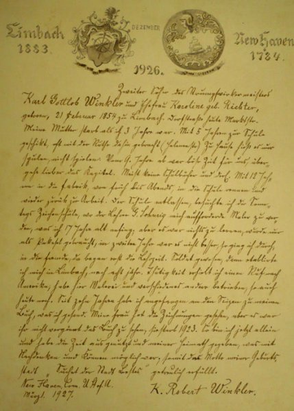 Quellen | Paul Fritzsching: „Am 21. Februar 1929 Robert Winkler, New Haven, 75 Jahre alt“, Limbacher Heimatstudien - Eine Sammlung heimatkundlicher Aufsätze aus dem Limbacher Tageblatt |