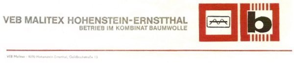 1964 | Gründung des VEB Malitex Hohenstein-Ernstthal am 01.07. durch Umbenennung des VEB Baumwollwebereien, Ausgliederung des Werkes Oederan und Übernahme eines Konfektionsbetriebes in Grüna |