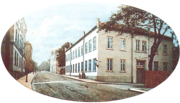 1868 | Errichtung des Schulgebäudes in der Turnstraße 4 auf einem „von einem der Branche nicht angehörigen Gönner“ geschenktem Grundstück. |  Bild 1: Gebäude der Wirkschule zur Zeit ihrer Gründung Bild 1: Gebäude der Wirkschule zur Zeit ihrer Gründung |