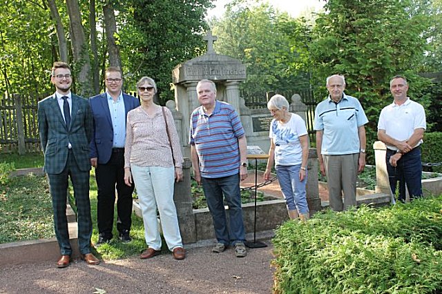 Schließlich konnte Marvin Müller im Namen des Fördervereins das restaurierte Grabmal der Öffentlichkeit präsentieren.